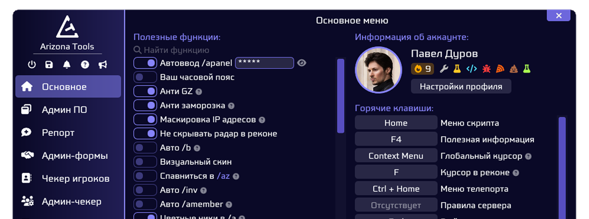 Полный контроль над игроками, включая детальную статистику, историю действий и мониторинг активности